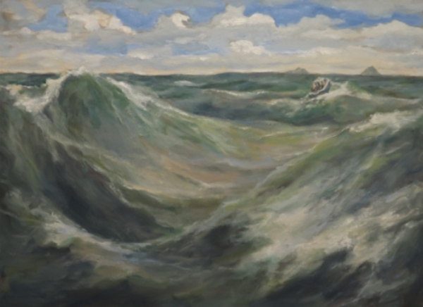 But our relationship with the sea is an elemental part of our nature and evocative paintings of the sea for its own sake were a significant part of the Romantic Movement. For painters of the figure, a basic understanding of anatomy is essential, and I have begun to learn that a study of the anatomy of the wave is also vital for sea painting. I have been much influenced in this by the works of the Great American marine painter Frederick Waugh.”